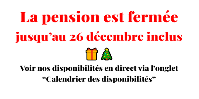 Leur humaine Chloé vous accueille dans un foyer passionné des canidés, sur 400m² de terrain clôturé où votre animal pourra gambader avec les copains, et un dortoir de 40m² CHAUFFÉ ET CLIMATISÉ où il pourra se faire câliner par une Nounou d'enfer en votre absence.